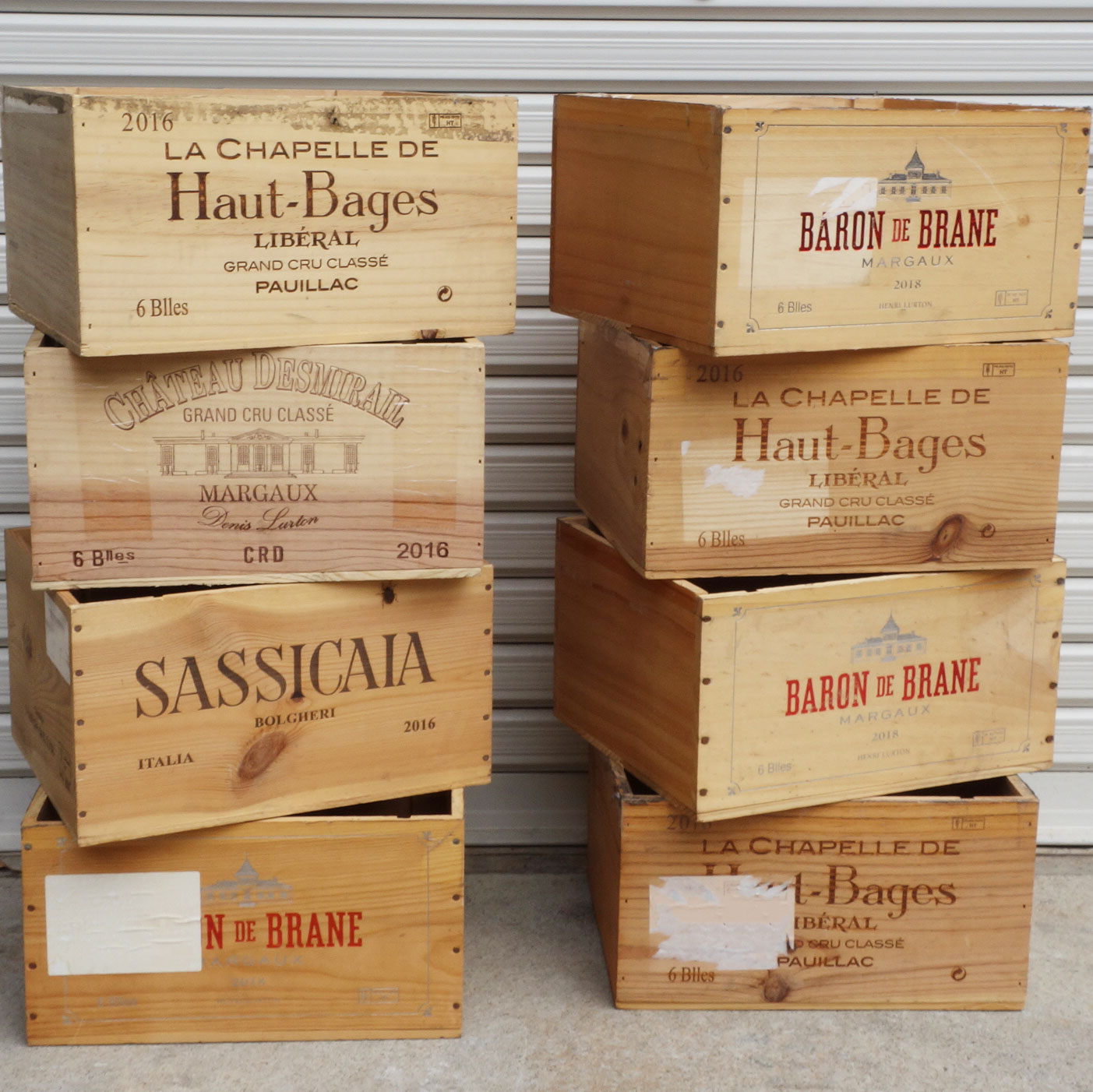 ◆◆◆ ワイン 木箱 6本用 ◆◆◆フランスのワイン生産地であるマルゴーやポイヤック地区の 有名シャトー(シャトー・デミライユ、バロン・ド・ブラーヌ、オー・バージュ・リベラル)や、 イタリアのサッシカイアなど、様々なワインの6本入り空き木箱。 サイズは、幅330×奥行265~280×高さ168~185mmで、多少寸法が異なります。 ワイン保管の他、小物収納や店舗ディスプレイなどにもいかがでしょうか♪ 弊社『ヤフーオークションブース』と『ヤフーショッピング』にて販売中! 是非ご覧くださいませ(*゚▽゚)ノ https://auctions.yahoo.co.jp/seller/nihonhouei?ei=UTF-8&sid=nihonhouei&s1=bids&o1=a&slider=0 https://store.shopping.yahoo.co.jp/town-houei/