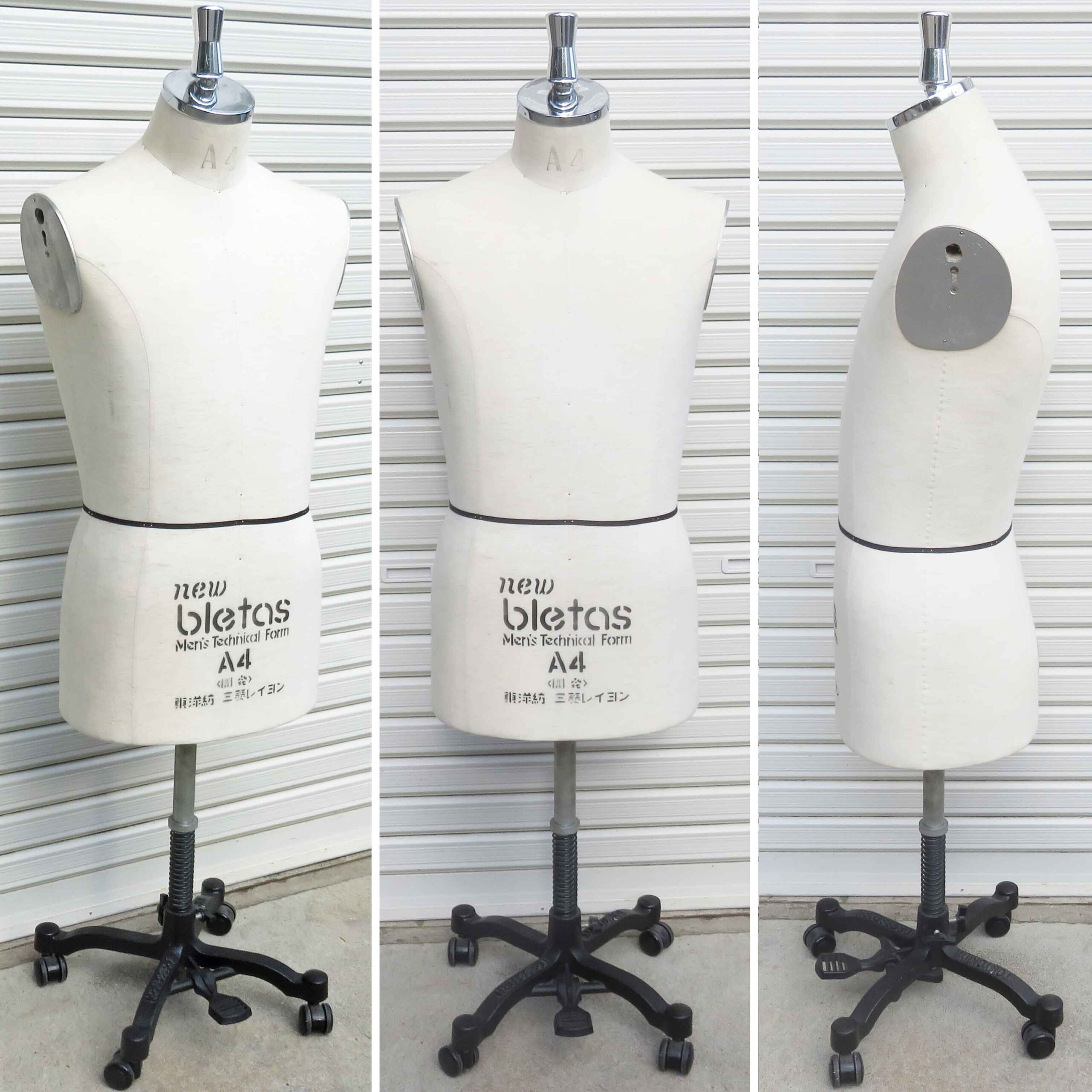 1919年創業・日本の老舗ダミーメーカー『キイヤ』の パターン用工業ダミー(立体裁断用ボディ/人台)を出品いたしました。 『Kiiya New Bletas Torso Form A4』 メンズテクニカルダミーとして裸の人体を基礎に、各服種間のゆるみを重視して開発されました。 シルエットを追求しなければならないデザインのパターンメイキングに最適。 ボディの高さはベースのペダルを踏むと簡単に上下可能です。 弊社『ヤフーオークションブース』と『ヤフーショッピング』にて販売中! 是非ご覧くださいませ(^-^)/ https://auctions.yahoo.co.jp/seller/GijC7QeWVBPnTcWZQVJBvBRbNy16P?user_type=c https://store.shopping.yahoo.co.jp/town-houei/